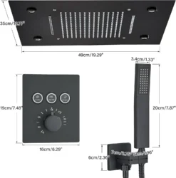 Dušisegisti komplekt musta termostaadiga, vihmavee ja juga 40X80