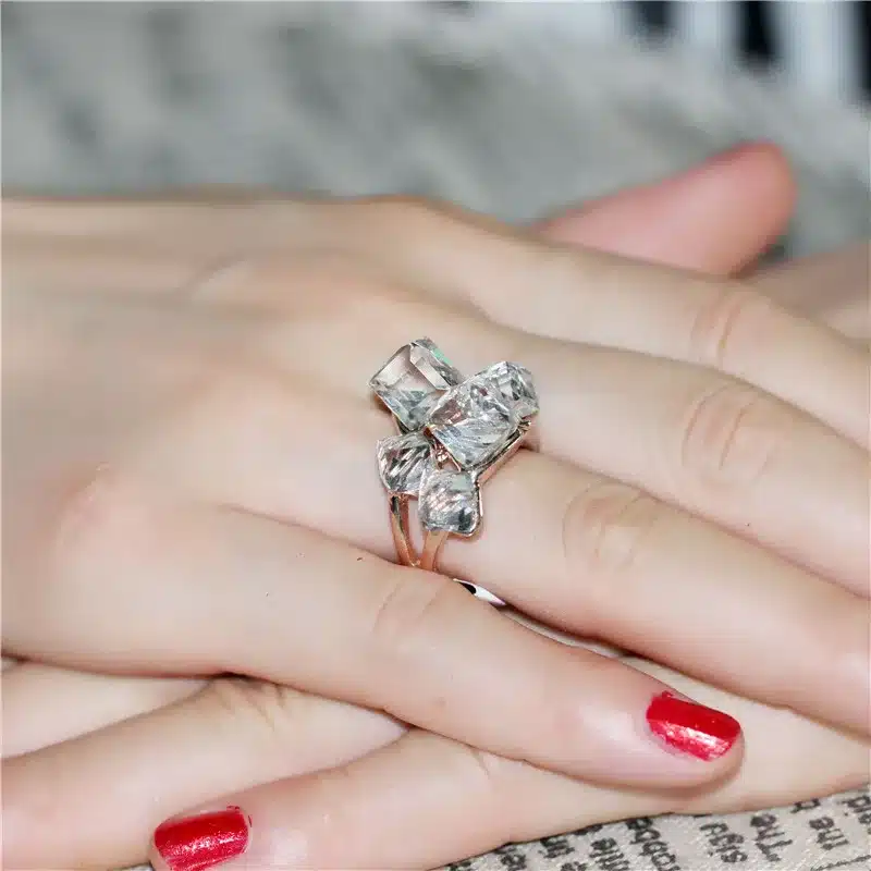 Elegantne sõrmus, millel on säravad kuubikud, lisab igale riietusele luksuslikku sära.Elegantne roosakuldne sõrmus, millel on pilkupüüdvad läbipaistvad kuubikud, lisab igale riietusele sära.Elegantne sõrmus, millel on mitmevärvilised kuubikud, lisab igale riietusele särtsu ja isikupära.Elegantne sõrmus, millel on säravad sinised kuubikud, lisab igale riietusele unikaalse aktsendi.