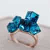 Elegantne sõrmus, millel on silmapaistvad sinised kuubikujulised kivid, lisab igale riietusele unikaalsust.