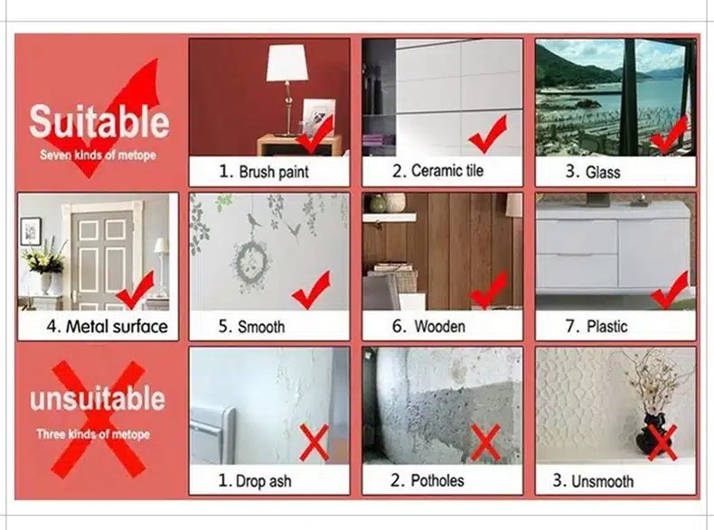 Erinevalt tavapärastest tapeetidest on meie kleepsud veekindlad ja isekleepuvad, mis teeb nende paigaldamise kiireks ja lihtsaks. Lisaks on need vastupidavad ja hõlpsasti eemaldatavad, jättes pinna kahjustamata. Valides meie toote, saad stiilse ja praktilise lahenduse, mis on taskukohane ja ajasäästlik.